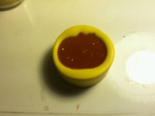 I'm using EasyCast Resin, opaque yellow coloring, translucent red coloring, glow in the dark glitter, green ribbon, and a pumpkin mold.